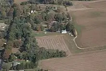 Hollingshead Airport (FAA Identifier NJ25) is a privately owned restricted-use airport located in Clarksboro, New Jersey in the United States. It was previously known as Peaslees Airfield.[1] It is located on the former estate of Ambassador Amos J. Peaslee.[2][3] Hollingshead Airport is located 4.7 nautical miles from Philadelphia International Airport. The airport is situated inside the Class B airspace for Philadelphia International Airport.[4] It is the only Restricted Use airport in the United States within Class B Airspace.[5] The airport and the first hangar were designed by Vincent Kling, a well known Philadelphia architect and avid private pilot[6] who oversaw many of the renovations and additions on the Peaslee estate.[7] Kling would later go on to author the Master Plan for Ronald Reagan Washington National Airport.[8] During construction of the airport tower, Amos J. Peaslee had the workmen install a stone from the Great Wall of China, which he had obtained during a visit to the wall.[9]