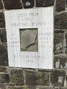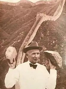 Ambassador Peaslee at the Great Wall of China with the stone that the brought back to New Jersey. Courtesy of the Peaslee family.