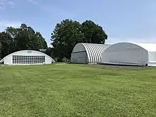 The Three hangars at Hollingshead Airport, 2022