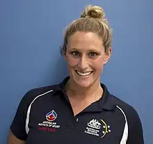 In 2004, she represented New South Wales at the U17 national championships where the team came out on top, and she was the leading goal scorer and named the player of the tournament.[6] This victory was one of the contributing factors to her getting a call up to the junior national team.[6] In 2008, she represented New South Wales as a member of the U20 team at the national championships. Her team took home gold after a 9–6 victory over Western Australia where she scored three goals in the match. The 2008 win was her fourth and final U20 national championship win.[19] In 2009, shortly after her eldest sister's death, she seriously injured her shoulder when she dislocated it while at the gym and required reconstruction surgery on it.[7][9] As a result, she was unable to compete in water polo for nine months.[3][7][9]