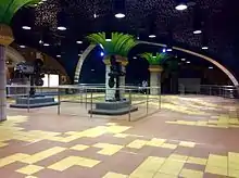 The station has, perhaps, the most detail and decorations of any station in the entire Metro system. This station is among the most pleasant and "fun" stations and tourists may find this station the most enjoyable. Other features include two movie projectors donated by Paramount Pictures pointed towards a representation of a movie screen flanked by large curtains. The ceiling of the station is covered with empty film reels. Pillars that provide support for the station are designed to look like palm trees, and beneath the handrail of the stairs are musical notes for the famed song "Hooray for Hollywood." Passengers making their way to the street follow the "Yellow Brick Road" while passing many colored tiles that depict icons or represent southern California lifestyle.