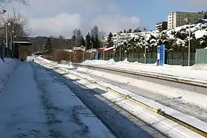 In 1990, it was decided to upgrade the Sognsvann Line to metro standard, which involves a heightening and lengthening of the platforms, installation of third rail power supply and a new signaling system.[4] Many residents feared that Holstein station would be closed together with Frøen,[5][6] but only the latter was closed.[7] The upgrade started three years later, when Tåsen station was moved 150 metres (490 ft) further north,[8] and Nordberg Station was closed.[9] Holstein was closed for traffic during the construction period.[4] Underpasses were built at both Holstein and Nordberg stations,[10] and new ticket machines were installed at Holstein.[11]