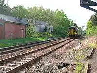 The station is now closed, although the line through the station is still open. One platform still exists and a level crossing controlled by a signal box. The small village of Holywood with its church stands a little way off and the old creamery stands close by to the station site.