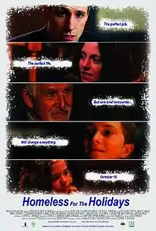 Homeless for the Holidays is a 2009 Christian-Christmas film by Breathe Motion Pictures. The film was directed by George A. Johnson,[1] who previously directed Dreamer: The Movie.[2] Shooting began on April 18, 2009, in Fort Wayne, Indiana.[3] In January 2010, it was released theatrically for a limited time, including a special screening sponsored by The Dove Foundation at Celebration! Cinema in Grand Rapids, Michigan.[4]