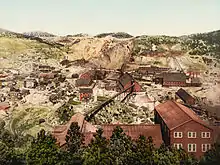 The gold ore mined at Homestake was considered low grade (less than one ounce per ton), but the body of ore was large.[8] Through 2001, the mine produced 39,800,000 troy ounces (43,700,000 oz; 1,240,000 kg) of gold and 9,000,000 troy ounces (9,870,000 oz; 280,000 kg) of silver. In terms of total production, the Lead mining district, of which the Homestake mine is the only producer, was the second-largest gold producer in the United States, after the Carlin district in Nevada. Homestake was the longest continually operating mine in United States history.