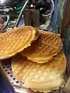 ![]() | Peanut butter, butter, sugar and condensed milk are put together in the 2 waffles. |