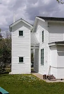 The Hooper–Bowler–Hillstrom House was built in 1871 in Belle Plaine, Minnesota, United States, by Sandford A. Hooper, a local businessman and promoter of the town. In 1886 it conveyed to Samuel Bowler, a founder of the State Bank of Belle Plaine and lumber-yard owner. Bowler added a new kitchen, buttery, and a five-hole, two-story outhouse that is connected to the house via a skyway. He also added a copper-lined bathtub. When the Bowlers moved to Denver, Colorado in 1901, the clapboard frame house was sold to Alfred Hillstrom whose family lived in the house until it was purchased in 1975 by the town's Historical Society. It is now owned by the city of Belle Plaine and is open to the public. Current furnishings include three periods-1850s and 1860s, Victorian, and early 1900s.[2][3]