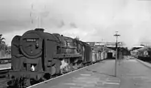 There was a cattle mart opposite the station,[5] in use until the 1960s, with railway access parallel to the bay platform, then numbered Platform 1. Milk trains bound for the Black Country, Birmingham and London along the Great Western Main Line were assembled each evening on the then extensive sidings, and there was an extensive traffic of live cattle. Mr Parton of the Station Garage provided a taxi service with two luxurious black Packard limousines. Nowadays commercial premises occupy the site of the garage and the mart.