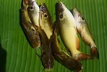 Horabagrus brachysoma or the sun catfish is a species of catfish endemic to rivers in the Western Ghats of India. It is known as Günther's catfish or yellow catfish.[2] It is also known as Manjakoori in its native range.[3] It is also known by a host of other names, such as bullseye catfish, golden red tail catfish and solar catfish.[4]