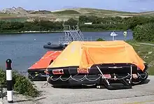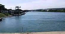 Sea Survival Centre slipway, with Paulsgrove landfill site reclamation beyond