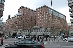 Lying on the block delimited by the streets of Diego de León, Conde de Peñalver, Maldonado and General Díaz Porlier,[1] it was a project of Manuel Martínez Chumillas, who had been involved with the GATEPAC group during the Second Republic.[2] Intending to replace the old Hospital de la Princesa built in the Paseo de Areneros (calle de Alberto Aguilera), it was inaugurated on 3 November 1955 under the name of Gran Hospital de la Beneficencia General del Estado.[1] The building works lasted however until 1956.[3] The hospital forms a 14-floor building complex.[4] Starting from 100 at the time of its opening, the effective bed usage steadily grew, reaching 761 beds in 1959.[1]