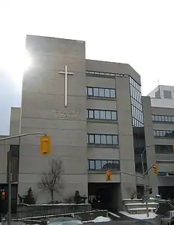 In 1892, the hospital was moved to its present location on Sydenham Street, which formerly housed Regiopolis College. The original college building is now the Sydenham Wing of the Hotel Dieu Hospital.[5]