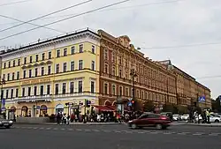 The hotel is situated at the intersection of Nevsky Prospekt and Mikhailovskaya Street.