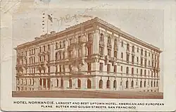 2. 1 2 "Hotel Normandie Soon to Open". The San Francisco Examiner. San Francisco, California. April 4, 1908. Retrieved 2023-06-20.