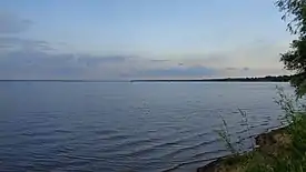 At 22,000 acres, Houghton Lake is Michigan's largest inland lake and has been called a "Fish Factory" by many sources.[19][20] It is relatively shallow with a maximum depth of 24 feet and heavy weed bed cover, making an ideal fish habitat. There are 7 public access sites on the lake, and a supporting commercial infrastructure (e.g., bait and tackle shops, marinas, and boat dealerships) has sprung up around the recreational fishing industry.[21]