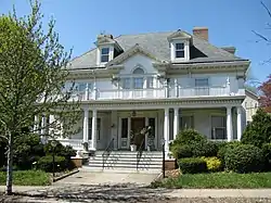 The House at 15 Chestnut Street in Wakefield, Massachusetts is a well preserved high style Colonial Revival house. It was built in 1889 for Thomas Skinner, a Boston bookkeeper. The 2+12-story wood-frame house is topped by a hipped roof with flared eaves and a heavily decorated cornice. A porch extends across the front of the house, which is supported by paired turned columns. Above on the porch is a low railing with paired pillars (matching the support columns in position) topped by urns. The front door is flanked by Ionic pilasters, then sidelight windows, and then another pair of pilasters.[2]