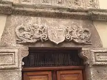 Above the portal there is a decoration in high relief, with a compass and a delineator in its middle,[4] between two big drakes ridden by two small angels with a trident in their hands.