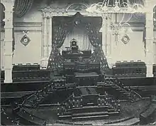 In 1889, the House of Peers Ordinance established the House of Peers and its composition. For the first session of the Imperial Diet (November 1890–March 1891), there were 145 hereditary members and 106 imperial appointees and high taxpayers, for a total of 251 members. In the 1920s, four new peers elected by the Japan Imperial Academy were added, and the number of peers elected by the top taxpayers of each prefecture was increased from 47 to 66 as some prefectures now elected two members. Inversely, the minimum age for hereditary (dukes and marquesses) and mutually elected (counts, viscounts and barons) noble peers was increased to 30, slightly reducing their number. By 1938, membership reached 409 seats.[2] After the addition of seats for the imperial colonies of Chōsen (the Japanese colonial name of Korea) and Taiwan during the last stages of WWII, it stood at 418 at the beginning of the 89th Imperial Diet in November 1945,[3] briefly before Douglas MacArthur's "purge" barred many members from public office. In 1947 during its 92nd and final session, the number of members was 373.