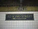 Both platforms have an unstaffed secondary fare control area towards their south ends. Two high entry/exit turnstiles and one exit-only turnstile leads to two staircases going up to Varick and King Streets, either western corners on the South Ferry-bound side and either eastern corners on the Bronx-bound side.[21]