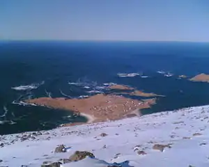 Hovden is a fishing village in Bø Municipality in Nordland county, Norway. The village is located at the northern tip of a peninsula on the island of Langøya, on the west side of the Malnesfjorden. The ocean lies to the north and west of the village. The road that goes to Hovden ends at the village. The habitation of Hovden, on the outermost point on a peninsula of the third-largest island in Norway (Langøya) is because of the closeness to the rich fishing banks off of the Vesterålen archipelago. Fish processing and fishing are the main employment of dwellers in Hovden.[2]
