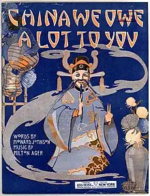 Cover for sheet music to Johnson's "China We Owe a Lot to You"