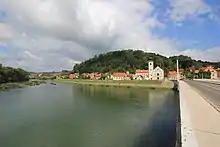 During World War II, the town was occupied by Axis troops and was included into the Pavelić's Independent State of Croatia (NDH). The fascist Ustashe regime committed the Genocide of the Serbs and the Holocaust. Between 29 and 37 July 1941, 280 Serbs were killed and thrown into pits near Kostajnica.[12] The town was bombed by American forces on May 30, 1944.