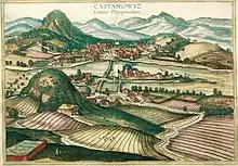 The Ottoman 1537 offensive against Kostajnica and Dubica ended in Ottoman defeat in a battle near Jasenovac. They nevertheless conquered Dubica in 1538, and conducted raids in the Kostajnica area in 1539, failing to capture any of the forts, but causing widespread destruction.[6] Attempts to capture Kostajnica were repeated in 1550 and 1552.[7] Finally, in 1556 the Ottoman army, led by Malkoč-beg, captured Kostajnica after a one-day siege.[8]