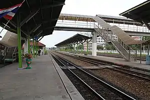 Hua Takhe railway station is a railway station located in Lat Krabang Subdistrict, Lat Krabang District, Bangkok. It is a class 1 railway station located 30.911 km (19.2 mi) from Bangkok railway station. This station is the nearest station to Suvarnabhumi Airport, as well as the nearest large railway station to King Mongkut's Institute of Technology Ladkrabang. However, the nearest railway station to KMITL is Phra Chom Klao halt, located only 830 m (2,723 ft) from Hua Takhe Station. Hua Takhe is also the junction (although not officially one) for the freight-only line to the Lat Krabang Inland Container Depot (ICD).