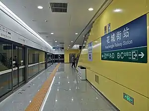 Huachengjie railway station (Chinese: 花城街站; pinyin: Huāchéngjiē zhàn) is an underground railway station located in Huadu District, Guangzhou, Guangdong, China. It opened with the Eastern section of the Guangzhou–Foshan circular intercity railway on 30 November 2020.[1][2]