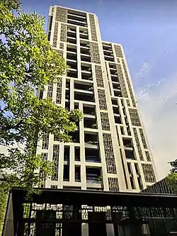 Designed by the Singapore and WOHA architectural team, under the requirements of preventing earthquakes and typhoons common in Taiwan, the symmetrical structural frame was adopted to promote a multi-scale Chinese-style folding screen, presented with a super-large structural frame and metal filigree.[2] Each household in the building has an open balcony with a ceiling height of more than seven meters. There is also an indoor heated swimming pool located on the 2nd floor.[3][4]