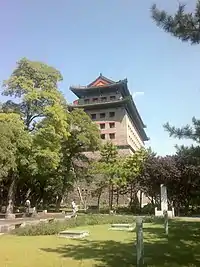 During the Republican era, the three top ranking students of each semester were exempt from paying tuition.[15] Students were taught Arabic beginning in the third grade and classical Chinese in the fifth grade.[15] Students also had two days per week of English instructions.[15] A martial artist at the Fire God Temple taught physical education.[15] The green and white school building with Islamic architectural elements was built in 1989 and expanded in 2001.[14] The school remains a key point school in Dongcheng District and has pupils of Hui, Han, Manchu, Tibetan, Miao and other nationalities.[16]