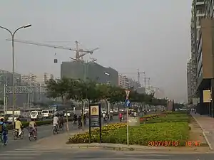 Apartment towers under construction in 2007 along Guangqumen Inner Street, which marks the southern boundary of Huashi.