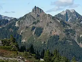The Alpine Lakes Wilderness features some of the most rugged topography in the Cascade Range with craggy peaks and ridges, deep glacial valleys, and granite walls spotted with over 700 mountain lakes.[5] Geological events occurring many years ago created the diverse topography and drastic elevation changes over the Cascade Range leading to the various climate differences. These climate differences lead to vegetation variety defining the ecoregions in this area. The elevation range of this area is between about 1,000 feet (300 m) in the lower elevations to over 9,000 feet (2,700 m) on Mount Stuart.