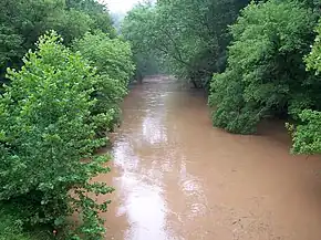 The Hughes River is a tributary of the Little Kanawha River in western West Virginia in the United States. Via the Little Kanawha and Ohio Rivers, it is part of the watershed of the Mississippi River. As measured from the confluence of its north and south forks, the Hughes is 18 mi (29 km) long,[5] and drains a rural area of the unglaciated portion of the Allegheny Plateau.[6]