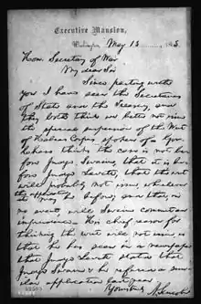 Letter from President Abraham Lincoln to United States Secretary of War Edwin M. Stanton discussing Judge Humphrey Leavitt's decision in habeas corpus case