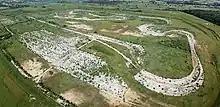 In the years after 2010, little was done on the original place of the Balatonring. In 2012, the outline of the track couldn't even be seen due to the weeds and grass growing back where the once barren places were created during the construction process. In that same year, the project became bankrupt and an auction had been set up to sell the circuit but to no success.[27][28] In 2016, a Google Maps picture shows that the layout of the track is kept clean once again, hoping that the government could find a new investor in the future. Reports that the site was used as an illegal dumping ground and that the foundation stone was stolen also emerged.[19][28] In 2020, Tibor Schuller, mayor of Sávoly, hoped that the government would at least finish the original circuit because, in terms of its status, the track is still registered as a state-owned investment and the surrounding infrastructure is also good. However, that seems impossible for multiple reasons; the expectations of the paddock building and the central infrastructure no longer meet the area, the line drawing is already considered obsolete, there is already a similar track on the race calendar meaning that the rights holder would not support the location of the venue, there is not enough space in the area for other facilities that allow multifunctionality, existing earthworks would have to be completely dismantled and redone, increasing the costs even more, the noise emission standards have become stricter and don't allow for the previously planned track site to be built since it is so close to populated areas, the changed legal environment since the original construction prescribes significantly stricter environmental and construction regulations and the possible implementation of the project would also lead to significant environmental pollution, the destruction of Natura 2000 sites in the area and endanger the unique wildlife of Kis-Balaton.[28]
