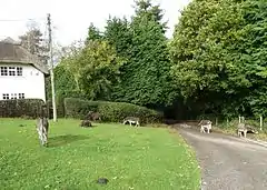 Hungerford is a hamlet in the civil parish of Hyde, and it is located just to the south of the village of Hyde. With just 11 dwellings, Hungerford is the smallest hamlet in the parish.[1] Hungerford is notable for its triangular village green bordered by two white thatched cottages, a cob farmhouse, and a traditional cottage.[2] A country house built in 1927 is situated on the southern edge of the hamlet.[2]