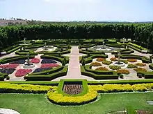 • Italian Grotto – The Italian Grotto features a statue of Saint Francis of Assisi and is lined with pink Wisterias, red Bougainvillea, lemon, orange and olive trees, lavender, and cascading geraniums and pelargoniums.[6]