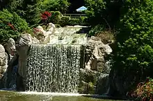 • Sunken Garden – The Sunken Garden features a 10 metre high waterfall with a pergola on top as well as a display of evergreen and deciduous trees, shrubs, flowers and pathways surrounded with hundreds of roses.[11]