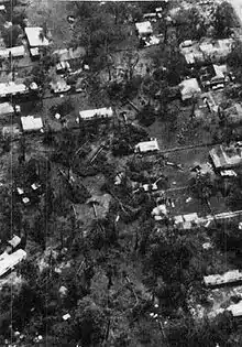 Possibly tornado- or microburst-induced damage between Hitchcock and Bacliff photographed from a National Oceanic and Atmospheric Administration helicopter
