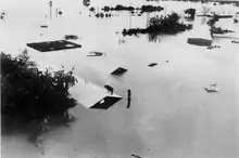 Prior to its arrival, flooding across the central United States killed six people, forced thousands of people from their homes, and left at least $76 million in damage (1986 USD).[7] Additional flooding from Paine exacerbated the situation; the flooding affected 52 of the 77 counties in Oklahoma, which resulted in a total of $350 million in damage,[6] half of which from agriculture.[8] The remnants of Paine brought about the end of the extended period of rainfall, which overall had forced 55,000 people from their homes, including 1,200 in East Saint Louis, Illinois where a floodgate broke.[9] It was described as one of the worst floods in Oklahoma history.[10]
