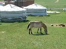 The Mongolian Government declared Hustai National Park as a Specially Protected Area in 1993, one year after the initiation of the reintroduction project of the Takhi[2] (Przewalski's horse) to the Hustain Nuruu. The HNP extends through the Khentii Mountains and includes the western edge of the Mongolian steppe at the boundaries of Altanbulag, Argalant and Bayankhangai Soums of Töv Province. The park is about 100 km from the capital city of Ulaanbaatar to the west.[3][4]