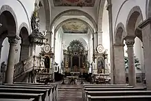 The Romanesque abbey church was consecrated on 7 August 1121. It contains the tomb of the Blessed Ekkehard, the first abbot of Huysburg. In 2004, at his own request, the former apostolic administrator in Magdeburg, Bishop Johannes Braun, was also laid to rest here.