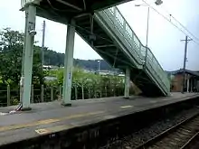The station consists of two opposed side platforms connected by a footbridge.The station is staffed.