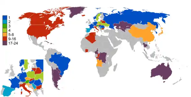 | FRA | × | × | × | × | × | × | 12th | •• | • | • | • | • | 22nd | 22nd | • | • | 17th | 20th | • | • | • | • | • | 23rd | 26th | 7 | |||||