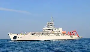 INS Sagardhwani (A74) (Hindi : सागरध्वनि - Voice of the Sea) is a marine acoustic research ship (MARS) owned by the Naval Physical and Oceanographic Laboratory (NPOL), a DRDO laboratory and is maintained and operated by the Indian Navy, and based at Southern Naval Command, Kochi.[4]