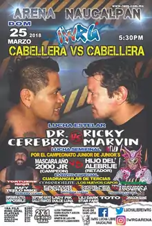 For the March 2018 Cabellera vs. Cabellera event IWRG main-stay Dr. Cerebro faced off against Ricky Marvin, a luchador who has worked all over the world, including regular tours in Japan. The match was the world traveler Marvin pin Dr. Cerebro, forcing the IWRG regular to have all his hair shaved off as a result. The show also featured El Hijo del Alebrije defeating Máscara Año 2000 Jr. to win the IWRG Junior de Juniors Championship as well as four further bouts.