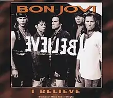 "I Believe" is a song by American rock band Bon Jovi. Written by Jon Bon Jovi, it was released in September 20, 1993, as the fifth single from their fifth studio album, Keep the Faith (1992). The single reached number 11 in the United Kingdom and number 40 in Australia.