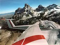 An Idaho Wing Civil Air Patrol glider soars above Driggs, Idaho.