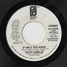 "If Only You Knew" is a single written and produced primarily by Dexter Wansel and Cynthia Biggs for American singer Patti LaBelle's sixth solo album, I'm in Love Again. It was released as the album's official first single in 1983, spending four weeks at #1 on the U.S. R&B chart during January and February 1984; it reached #46 on the Billboard Hot 100.[1]